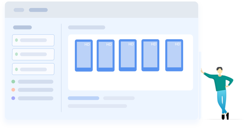 支持手机投屏实时画面,云控管理,可自定义设置投屏大小、横/竖屏显示及画面清晰度。